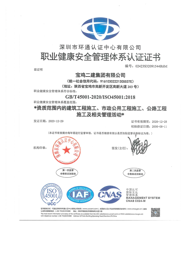 職業健康安全管理體系證書