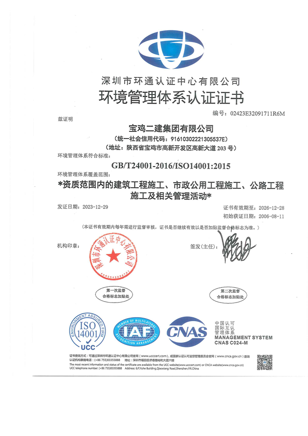 環境管理體系證書