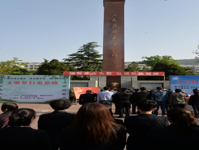 活動中,大家懷著無比崇敬的心情在寶天鐵路英烈紀念碑前向革命先烈鞠躬致敬、敬獻鮮花、瞻仰紀念碑,祭掃烈士墓,參觀寶天鐵路英烈紀念館。