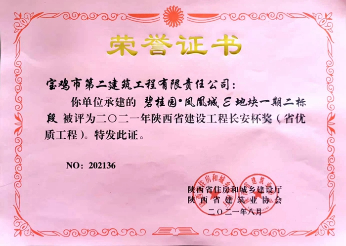 2021年陜西省建設工程長安杯獎(碧桂園?鳳凰城E地塊一期二標段)