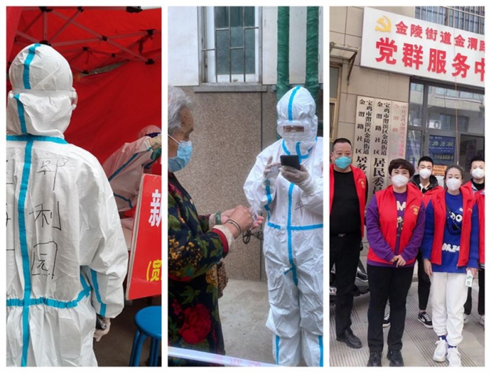 志愿者中的最美媽媽:郭利園、潘軼華、宋琳她們作為集團的青年共產黨員,在集團黨委吹響抗疫志愿“集結號”伊始,她們放棄在家照顧幼小的孩子,主動報名,挺身而出,配合集團疫情防控志愿者隊伍的所有工作,哪里有需要就去哪里,每天天不亮便悄悄的離開家,來到防疫防控卡點做志愿服務工作,入戶做核酸檢測、幫助弱勢群體,盡職盡責、熱心服務。宋琳的丈夫是抗疫一線的醫護人員,在渭濱區招募志愿者之時,自愿報名加入到金渭路社區的志愿服務中。她們是志愿者中的最美媽媽,家人的理解和支持已成為她們繼續堅守抗疫志愿服務的不竭動力。