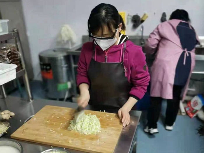 行政事務部 黨委工作部茍西萍,不辭辛苦,在完成集團志愿者工作的之余,來到寶石東社區,為所在封控區的醫護人員、志愿者、社區工作者、日間照料中心的老人幫廚做飯。