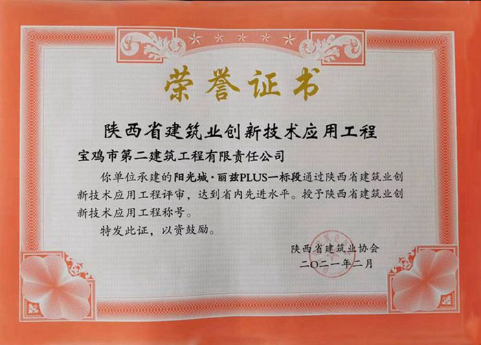 2021年陜西省建筑業創新技術應用工程(陽光城 ? 麗茲PLUS一標段)