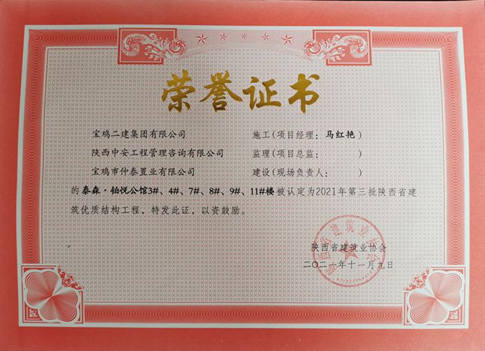 2021年度陜西省建筑優質結構工程(泰森 ? 鉑悅公館3#、4#、7#、8#、9#、11#樓)