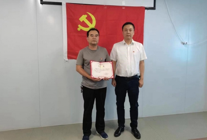 副總經理李紅軍為劉延強同志頒發“優秀共產黨員”榮譽證書,并鼓勵黨員們要立足崗位,踐行初心和使命,為創造更加美好的明天而努力奮斗。