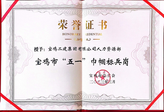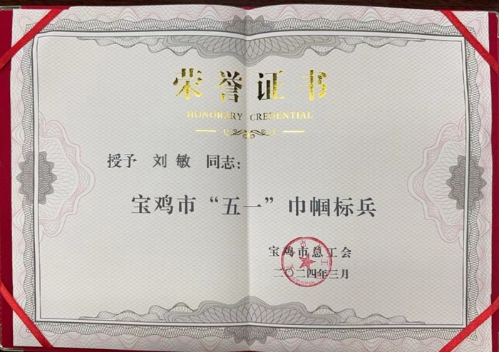 3月8日,在寶雞市總工會召開的第七屆二次女職委全委會上,第十七項目部女職工劉敏被授予“五一巾幗標兵”稱號。集團公司始終為女職工提供干事創業的廣闊舞臺,多年來,先后有14名女職工獲得各級各類巾幗標兵稱號,2個集體被授予“五一巾幗標兵崗”。