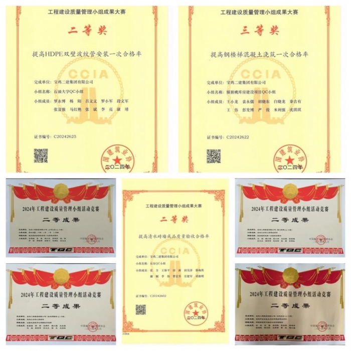近日,從中國建筑業協會、中國施工企業管理協會、陜西省質量協會、陜西省建筑業協會傳來喜訊,集團公司7項成果獲得國家級質量管理小組優秀成果稱號,其中二等獎6項、三等獎1項。