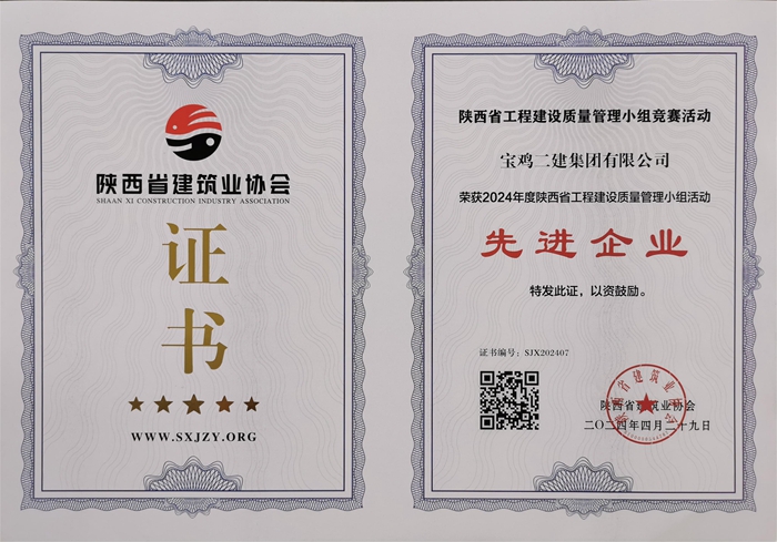 2024年度陜西省工程建設質量管理小組活動先進企業