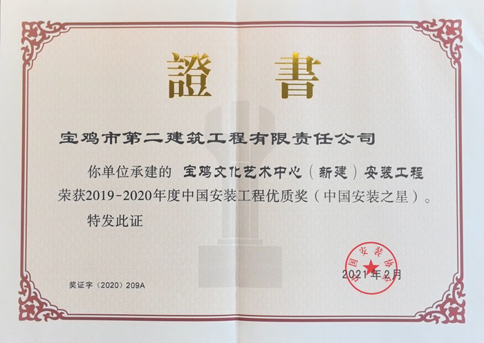 ?2019~2020年度中國安裝工程優質獎(寶雞文化藝術中心(新建)安裝工程)
